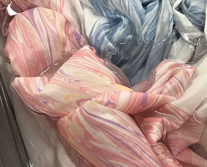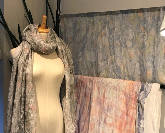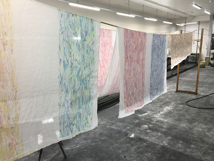墨流し染めはこれからも技術革新を続け、インテリア、アパレルなどのプロダクト商品によって日常生活を豊かに美しく彩る提案をしていきます。