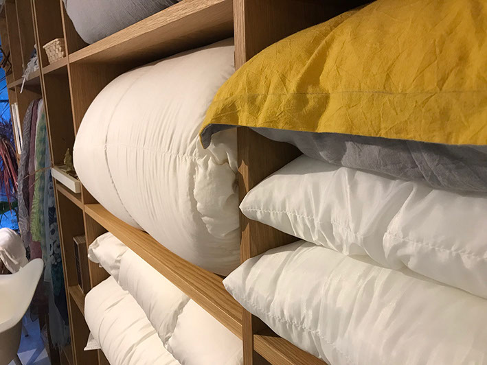綿や麻など植物性の繊維や、羽毛・羊毛・絹など動物性を組み合わせて、天然素材の良い所を集めて日本の各地方の住環境に合わせた寝具を作ります。